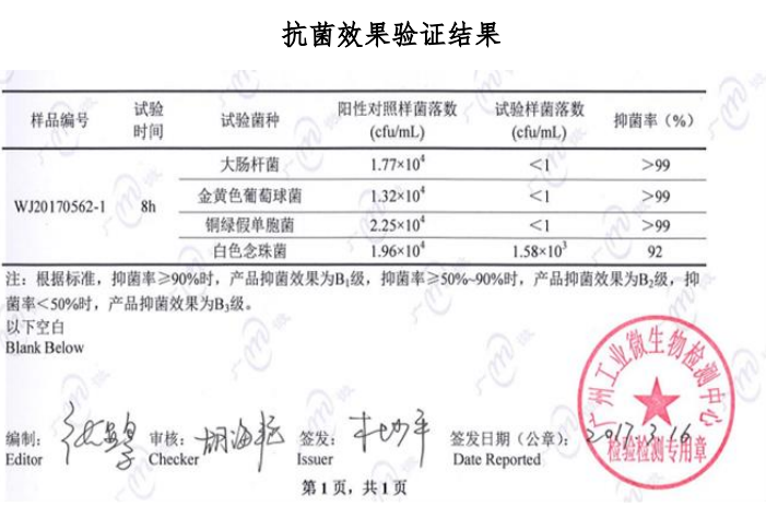 本產(chǎn)品以是高品質(zhì)新材料為主要原料,采用高科技技術(shù)生產(chǎn)而成具有穩(wěn)定的化學(xué)性能,熱穩(wěn)定性高,抗菌性能達 99%,可達 B1 級;可以負載銅、鋅、銀等金屬離子制備抗菌材料;可添加到塑料、橡膠、纖維、涂料、紙張、膠粘劑、陶瓷和玻璃制品中用作抗菌功能材料;以及銀鋅無機抗菌劑、稀土復(fù)合無機抗菌劑、抗菌纖維母粒、織物抗菌整理劑、羽絨抗菌除臭整理劑等;可以經(jīng)高溫煅燒而生成的抗菌劑;已用在防靜電鞋、導(dǎo)電鞋、抗菌內(nèi)衣、襪子、手術(shù)服、敷料、鞋墊和化妝品等各類商品中。